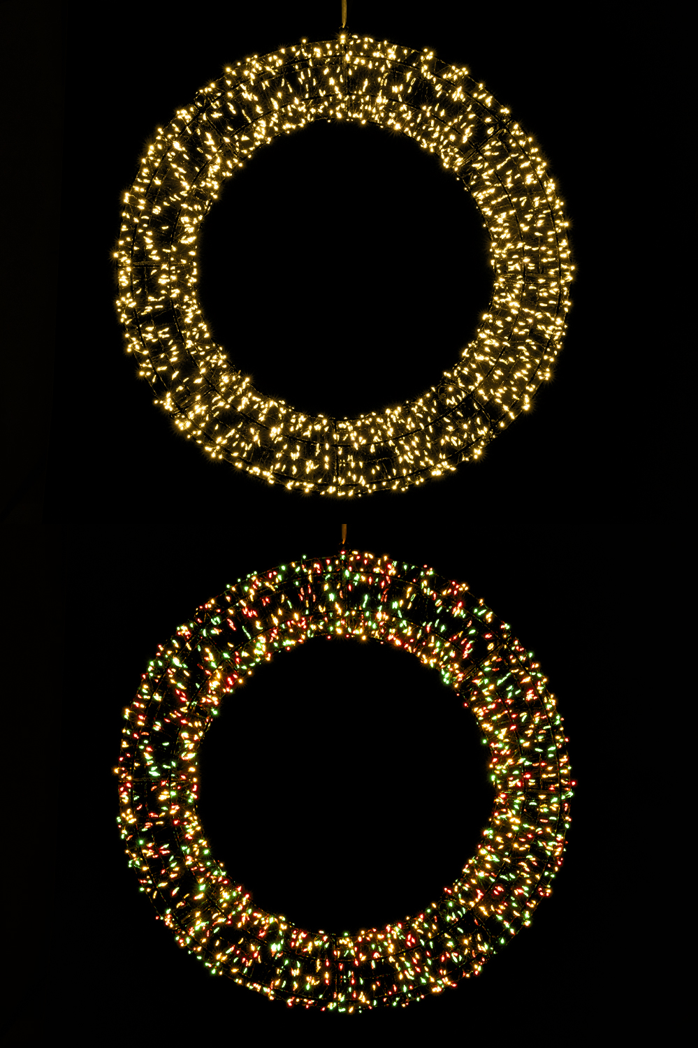 Metalen deurkrans met twee kleurenstanden; warm wit of rood geel groen.